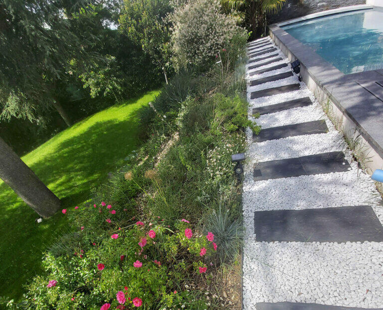 Le + : Dans le massif en pente des plantes aux racines fixatrices de terre.